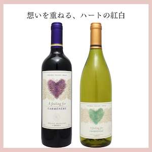 ハートのラベルが目を引く、紅白2本セットのワイン。
